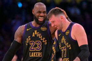 此役,东契奇出战38分钟,投篮25中12,三分17中7,罚球14中9,得到40分9篮板10助攻1抢断;41岁的詹姆斯14中13,三分2中2,罚球3中2,得30分5板2助1断1帽。
