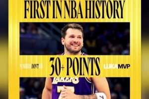 湖人官方发布纪念海报:东契奇在球队9连胜期间全部砍下30+,NBA历史首人!