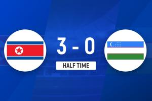 上半场补时10分钟,朝鲜女足3-0乌兹别克斯坦女足。
