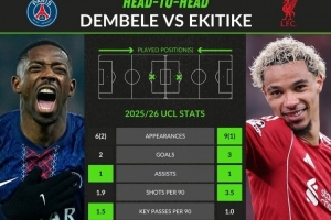 登贝莱(巴黎):6首发、2替补,2球、1助攻。场均1.9射门、1.5关键传球、0.1过人。预期进球值2.5。场均6.64分
