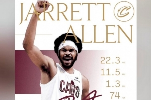 体育资讯3月1日讯 今天,骑士中锋贾勒特·阿伦在INS上转发了自己二月份的数据,能得到22.3分11.5篮板1.3盖帽,投篮命中率74%,得到10次两双。