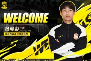 体育资讯3月8日讯 中超联赛首轮,青岛西海岸客场挑战浙江队。本场比赛青岛西海岸19岁小将杨展彭首发登场,迎来个人职业生涯首秀。