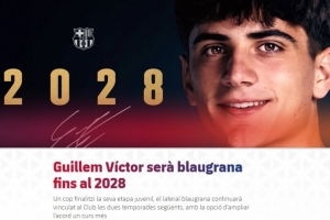 官方:巴萨与18岁边卫吉列姆·维克托续约至2028年 含延长1年条款